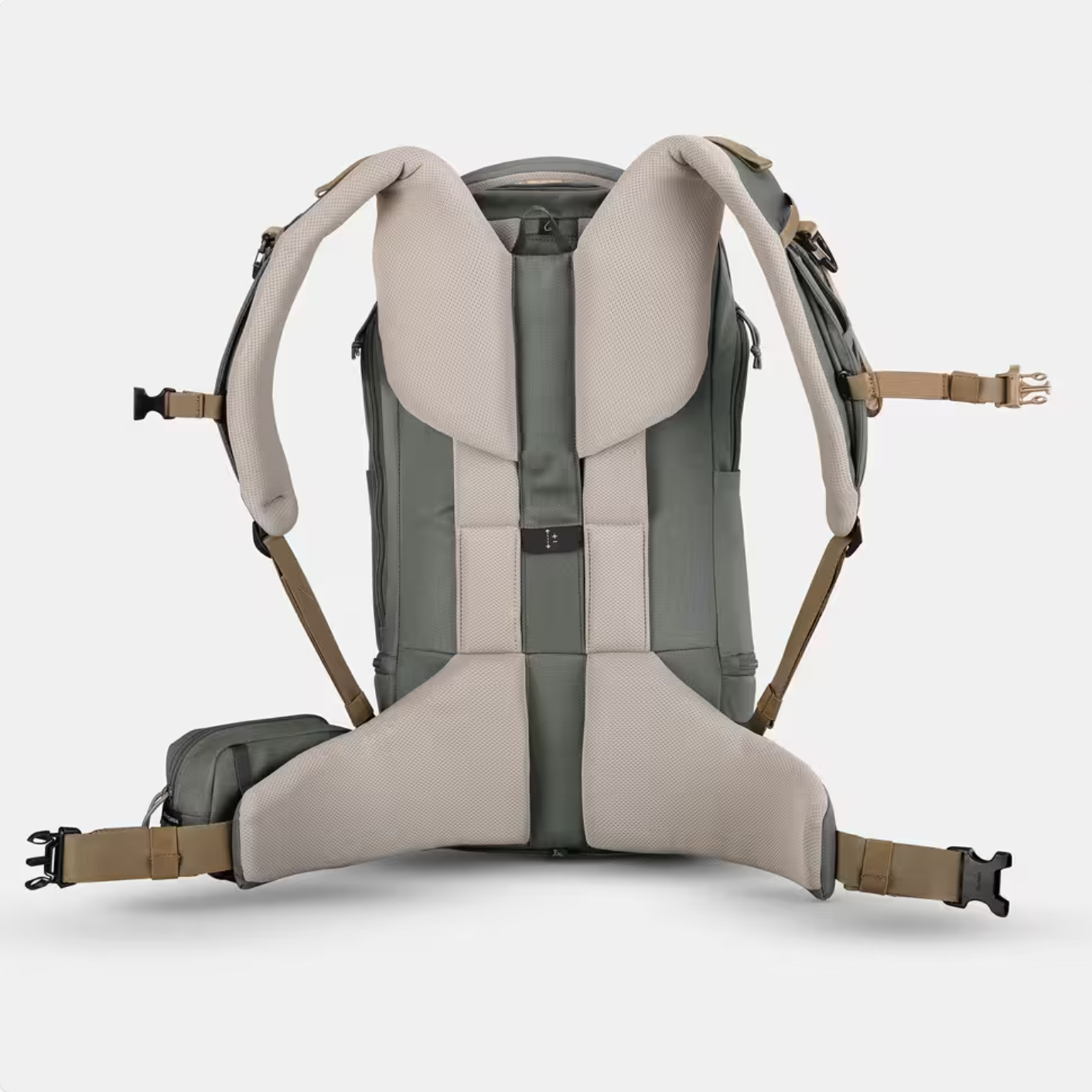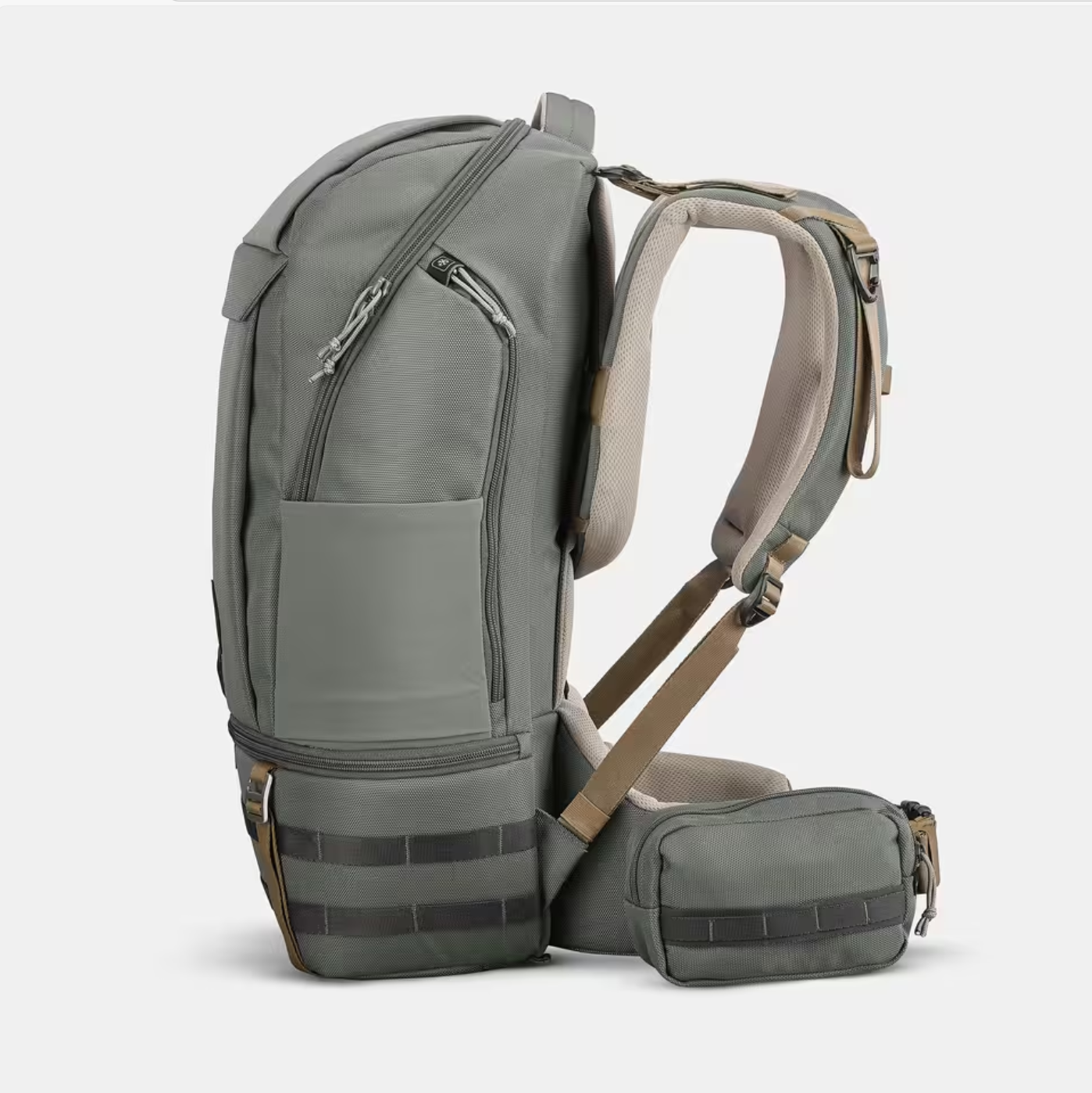 1. Design and Style Classic Khaki Hue: Features a timeless khaki color that blends well with natural surroundings like forests, mountains, and deserts. It has a military – inspired, rugged look. Casual Aesthetic: Has a relaxed and uncluttered design, suitable for both hiking and casual outings, travel, or daily use. 2. Functionality Spacious Main Compartment: The main compartment is large enough to hold hiking essentials such as a change of clothes, a lightweight jacket, food, a water bottle, and a small first – aid kit. It may have internal compartments for organization. Multiple Pockets: Side pockets for water bottles or small umbrellas, and front pockets for smaller items like keys, wallets, mobile phones, hiking accessories (maps, compasses, energy bars). External Attachment Points: Has sturdy external attachment points for strapping on larger or bulkier items such as camping mats, shoes, or small foldable chairs. 3. Durability High – Quality Materials: Made of durable, water – resistant materials like nylon or polyester to protect contents from the elements and abrasions on rough terrains. Reinforced Seams and Zippers: Reinforced seams with multiple stitching prevent splitting. High – quality, corrosion – resistant zippers ensure smooth operation. 4. Comfort Features Padded Shoulder Straps: Well – padded shoulder straps distribute weight evenly, reducing strain on the back and shoulders. Some have adjustable straps for a customized fit. Ventilated Back Panel: Comes with a ventilated back panel to allow air circulation, keeping the hiker’s back cool and dry, especially in hot weather or during strenuous hikes. 5. Versatility Beyond Hiking: While designed for hiking, it is suitable for other outdoor activities like picnics, beach outings, casual day – trips, and travel, with enough space for travel essentials.