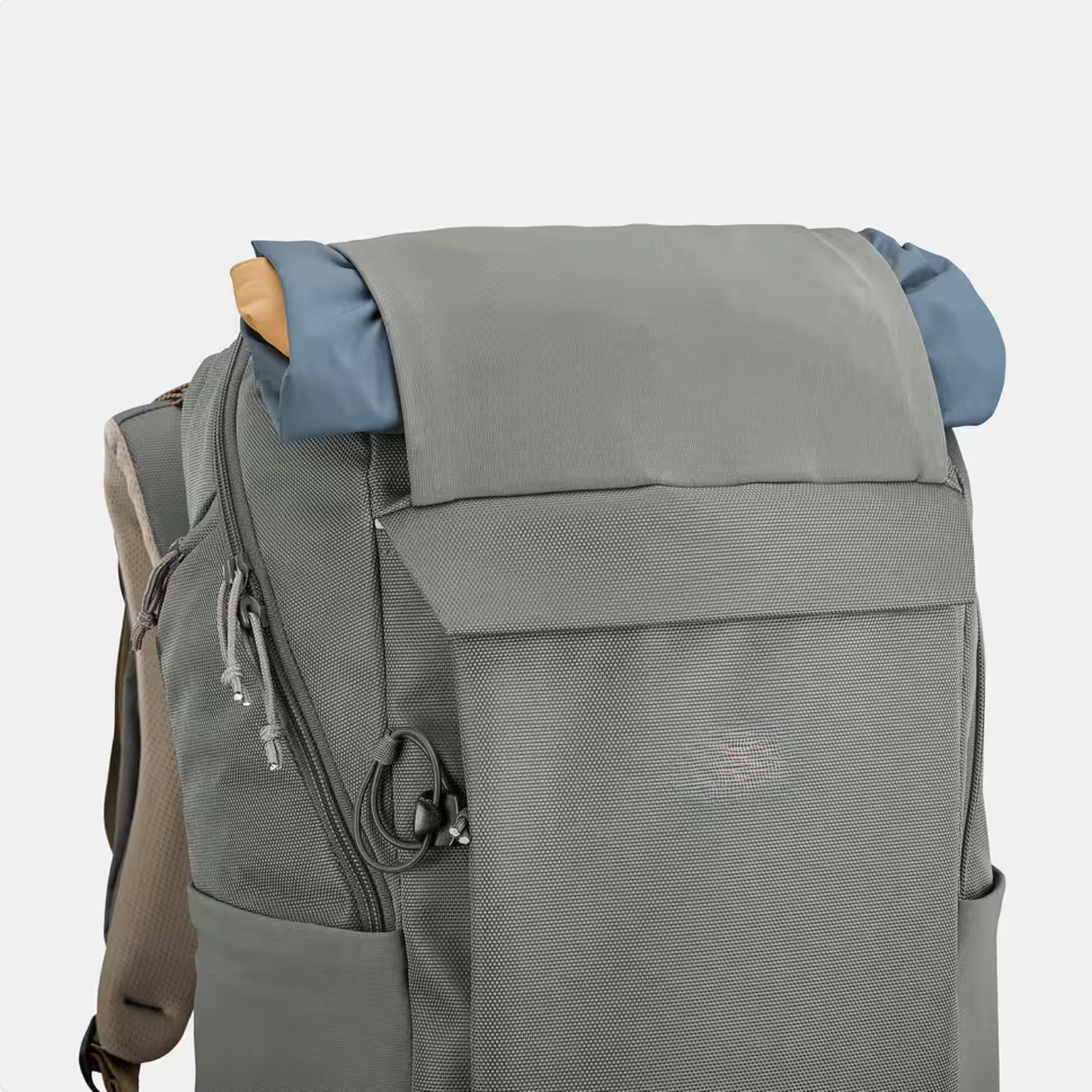 Design & Aesthetic Features a soft grayish-white hue that balances elegance and practicality, complementing both outdoor landscapes and urban settings. Minimalist, timeless silhouette with a 22L capacity—neither overly bulky nor too small—with clean lines and a structured-yet-flexible shape. Subtle details like a classic buckle closure and understated trim, avoiding excessive ornamentation for versatile style. Material & Durability Made from 350D recycled polyester with ripstop technology, lightweight yet tear-resistant, and treated with a water-repellent coating for light rain protection. Stain-resistant formulation for the grayish-white color, allowing easy removal of dirt/mud with a damp cloth. Reinforced stress points (strap attachments, bottom panel, zipper edges) with extra stitching; rubber-lined bottom for scratch protection. Smooth-gliding nylon zippers (matte silver pulls) and sturdy, lightweight buckles for reliable performance. Storage & Organization Main Compartment: Spacious enough for essentials (clothes, lunch, first-aid kit) with a mesh zip pocket for small items. Front Utility Pocket: Zippered design with slip pockets (for phone/wallet) and a key clip, offering quick access to frequently used items. Side Pockets: Elasticized mesh pockets to hold 750ml water bottles, umbrellas, or trekking poles. Hidden Laptop Sleeve: Padded, fleece-lined sleeve fitting 14” laptops, ideal for commutes or post-hike work. Comfort & Ergonomics Wide (2.5”), padded shoulder straps with breathable foam and adjustable length (17”–27”), plus a removable sternum strap to prevent slipping. Contoured back panel with ventilation channels for airflow, reducing sweat and providing spinal support. Reinforced top handle for easy lifting or hanging. Versatility Suitable for short hikes, nature walks, picnics, daily commutes, and travel (fits under airplane seats as a personal item). Seamlessly transitions from outdoor adventures to urban settings, pairing with casual or semi-formal attire. Sustainability 40% recycled polyester (from plastic bottles) reduces environmental impact. Uses low-impact, water-based dyes and is produced in a facility with renewable energy. Easy to maintain with spot cleaning, promoting long-term use to minimize waste.