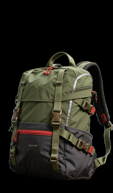 The backpack features a stylish and practical design. Its olive – green color gives it a rugged, outdoorsy look, complemented by black and red accents for a modern touch. The brand name “Shunwei” is subtly displayed, adding to its identity. The overall shape is ergonomic, with smooth curves and well – placed compartments, appealing to those who value both style and utility.