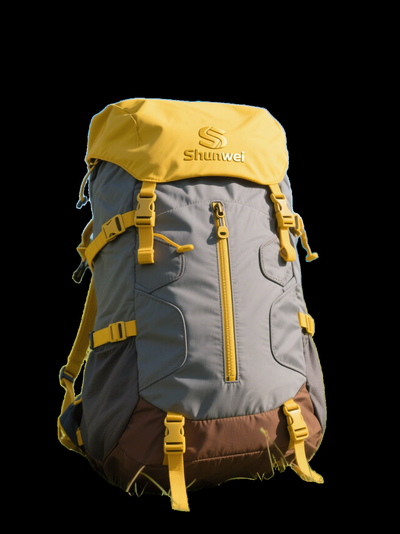 Made from 350D recycled polyester with ripstop technology, lightweight yet tear-resistant, and treated with a water-repellent coating for light rain protection.